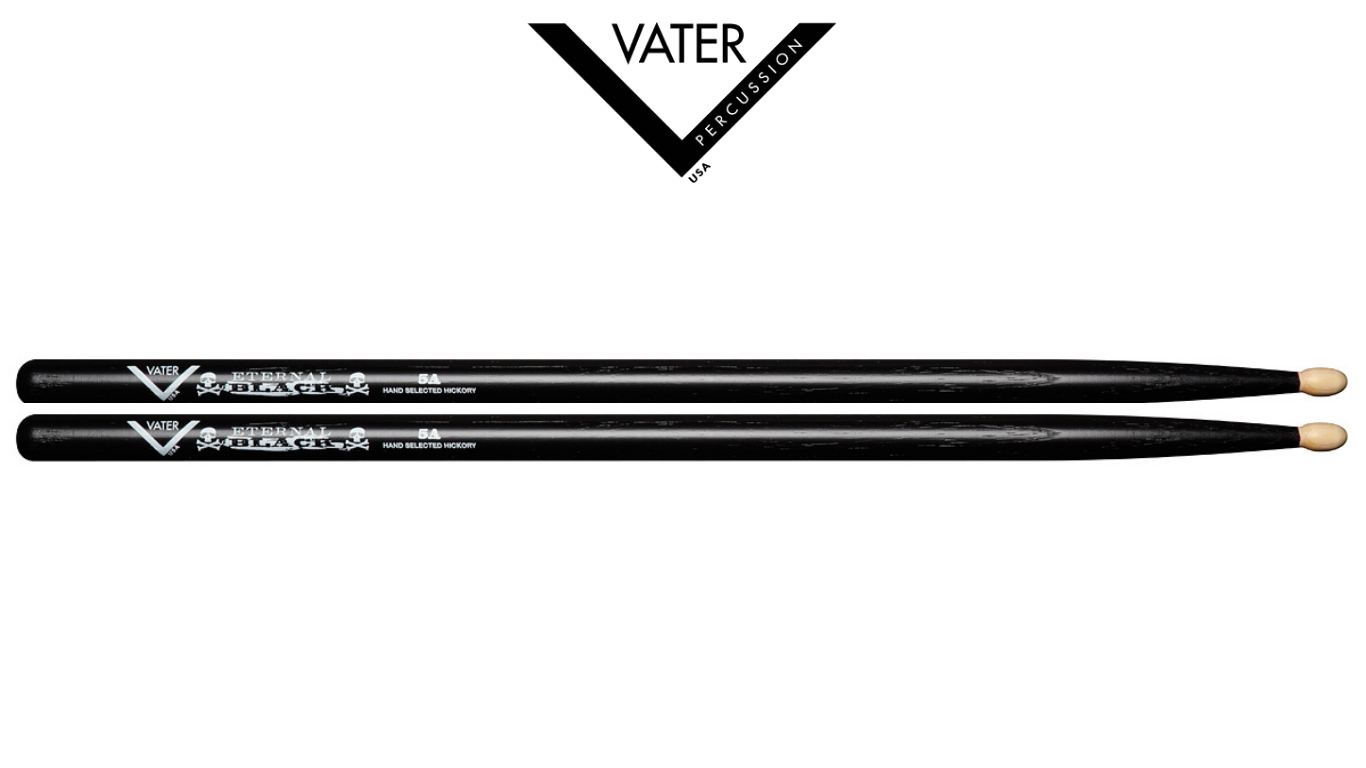 Very well balanced hickory stick. Heavier toward the tip for fast attack and response on drums. Finished in a black stain - VHEB5AW