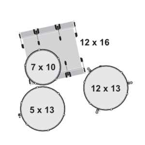 7-ply mahonie ketel - 30° bearing edge - 1,6 mm steel hoops - Chrome hardware - Incl. single tomholder - 10" x 7" TT / 13" x 12" FT / 16" x 12" BD / 13" x 5" SD - Incl Bass Drum Riser - No Cymbals.