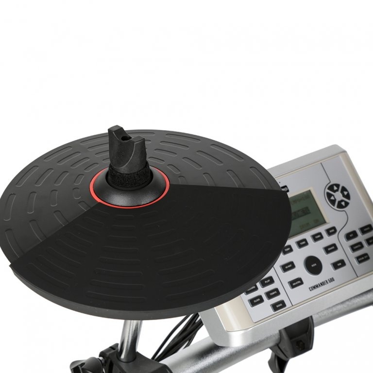 - Included: 1 x Commander 501 Sound Module, 1 x 8" mesh bass pad with bass kick pedal, 1 x 10" mesh Dual-zone snare pad and rim-shot strongly, 3 x 8" mesh dual-zone Tom pads, 1 x 10" Single-zone Hi-hat cymbal pad, 1 x 12" dual-zone crash cymbal pad with choke, 1 x 12" dual-zone ride cymbal pad with choke, 1 x Hi-hat controller pedal, 1 x sturdy 4-legged drum rack, with all mounting hardware and invisible cabling