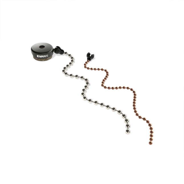 An update to the classic ProMark design, the EVANS Cymbal Sizzler provides riveted cymbal sound, without the hassle of drilling holes and inserting rivets. The new ball-joint design allows for swift application and removal of either the two included chains.