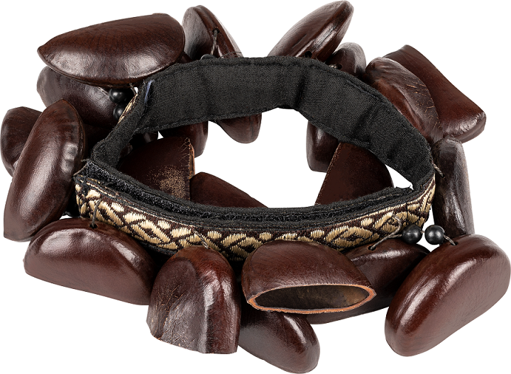 Hands-free—straps securely and comfortably around your ankle - Creates a hollow wooden shaker effect with warmth and depth - Equipped with hook-and-loop strap for a universally adjustable fit - Bendo seed shells.