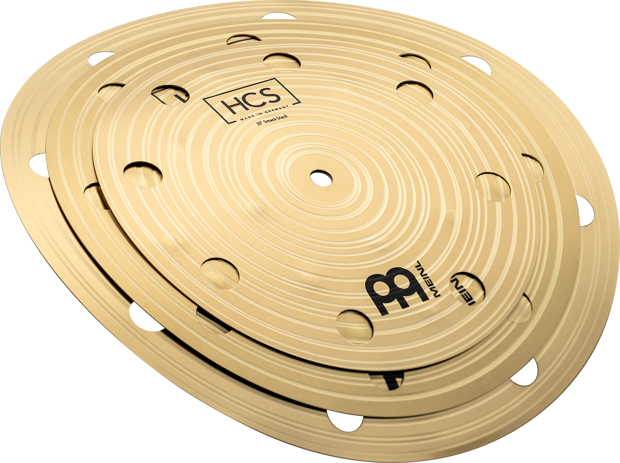 The 3-piece HCS 10/12/14 Smack Stack features three discs shaped to create a distinctive sound effect. The stack can be manipulated by adjusting the tension of the cymbal stand’s wing nut. Increased tension produces a crisp attack and short decay ideal for quick accents, while loose settings yield a longer sustain. Works well when paired with a snare drum for enhanced back beats, or as an alternative to your snare altogether. The discs are sized 10”, 12”, and 14”.