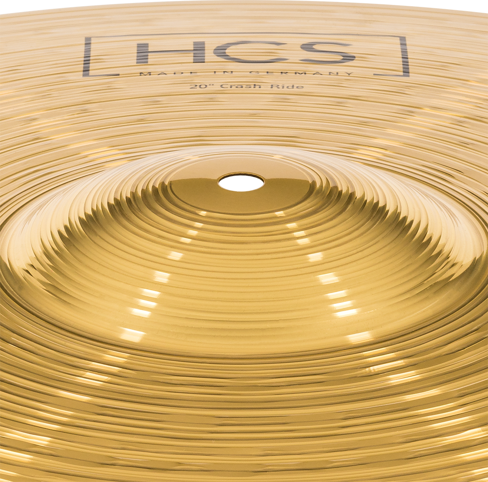 Clean stick response. Full bodied and warm with a washy ping and complex spread. Explosive sound when played as a crash.