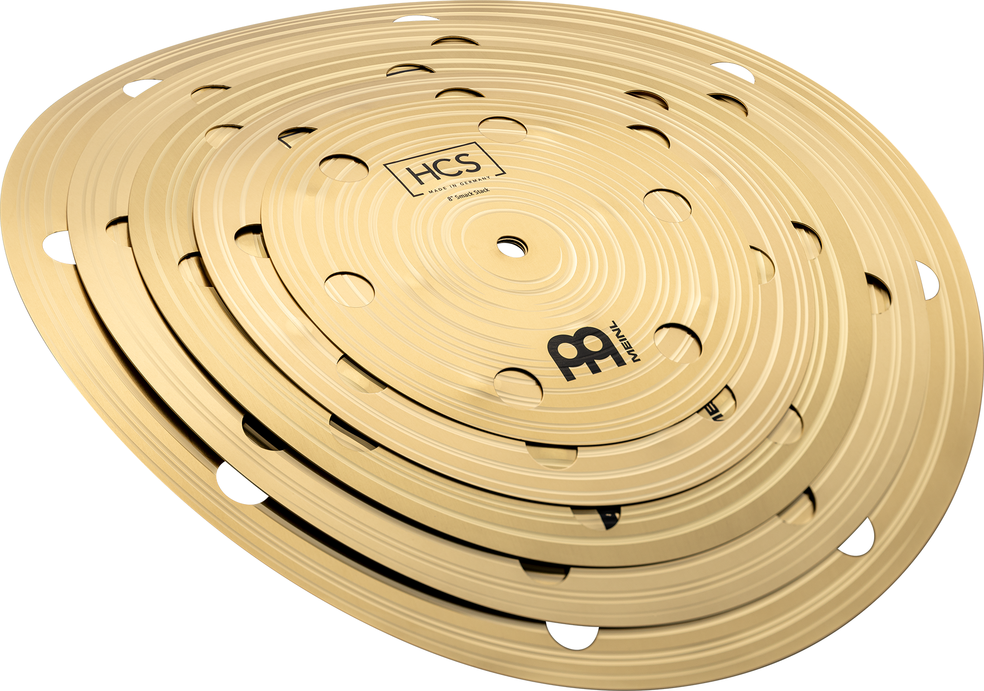 The 5-piece HCS 8/10/12/14/16 Smack Stack features five discs shaped to create a distinctive sound effect. The stack can be manipulated by adjusting the tension of the cymbal stand’s wing nut. Increased tension produces a crisp attack and short decay ideal for quick accents, while a looser setting yields a longer sustain. Works well when paired with a snare drum for enhanced back beats, or as an alternative to your snare altogether. Use all five discs for a fuller sound and increased projection, or mix and match a few sizes to find the sound that suits you best. The discs are sized 8”, 10”, 12”, 14” and 16”.
