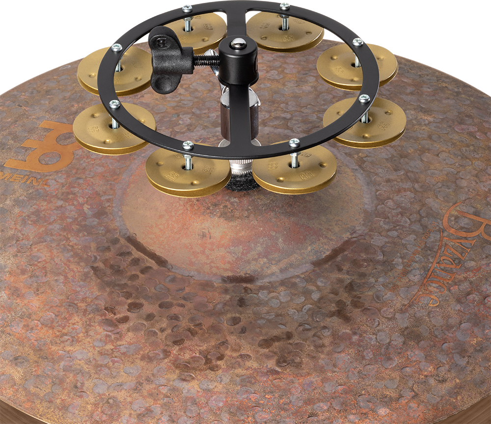 True to his signature cymbals, the Benny Greb signature hihat tambourine features sand blasted jingles that have a dry, vintage sound and unique matte appearance. The eight pairs of brass jingles with their special surfaces produce a mellow, yet edged “ching” effect that will lift any groove.