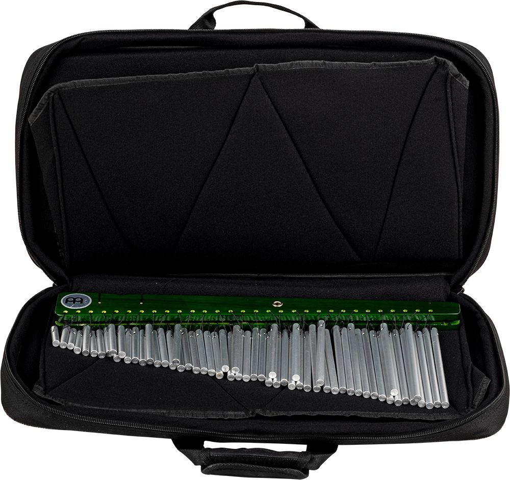 The MEINL Chimes Bag fits all common chime models and is the perfect solution for transporting these valuable precision instruments. Inner velcro straps hold the instrument in place while two internal pockets secure them.