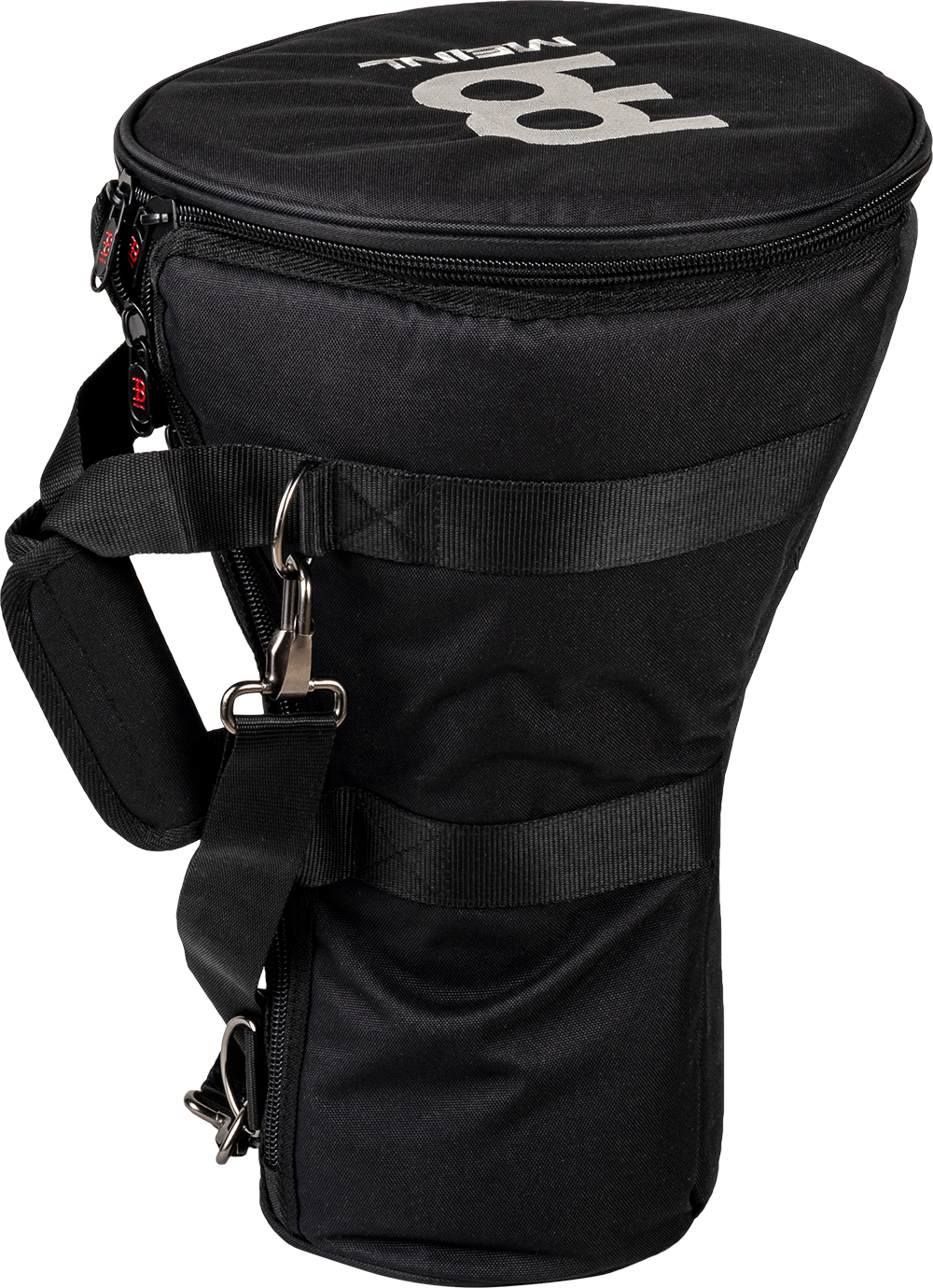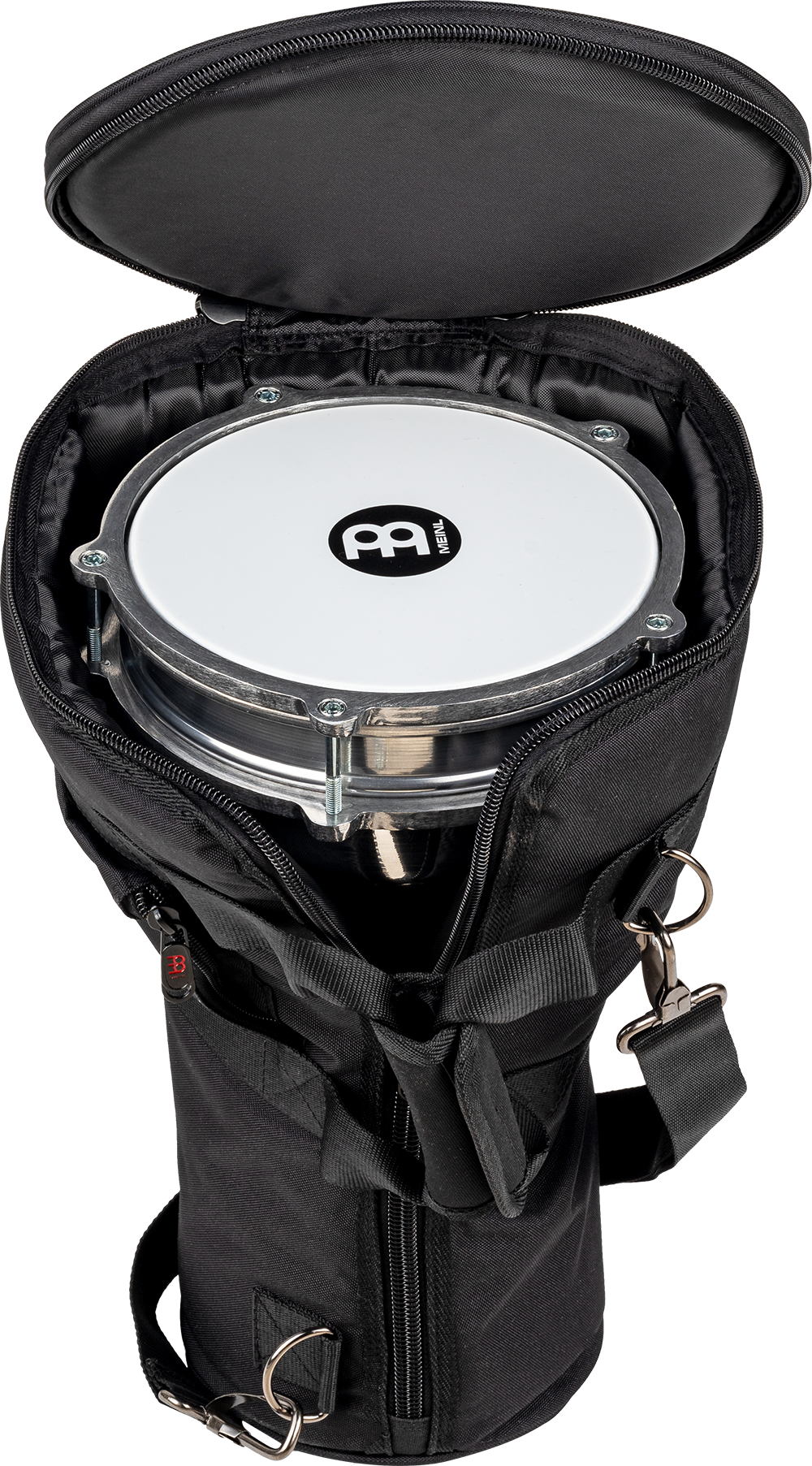 The MEINL Darbuka Bag is made from heavy duty padded nylon with reinforced stitching and is equipped with a doubleslide zipper, a padded shoulder strap, and a carrying grip.