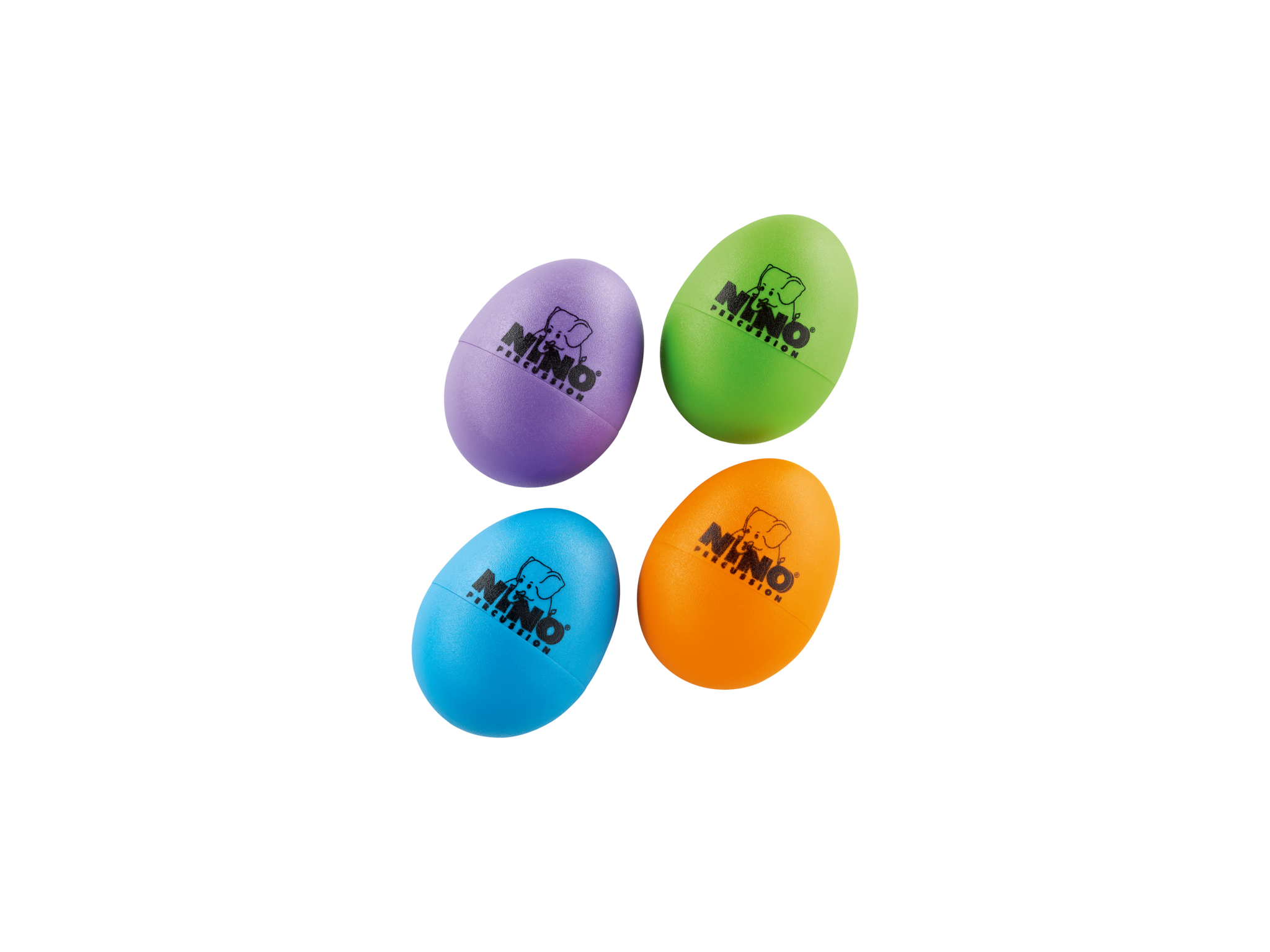 1x Egg Shaker, Aubergine (AU) - 1x Egg Shaker, Grass Green (GG) - 1x Egg Shaker, Orange (OR) - 1x Egg Shaker, Sky Blue (SB) - Nino Series.