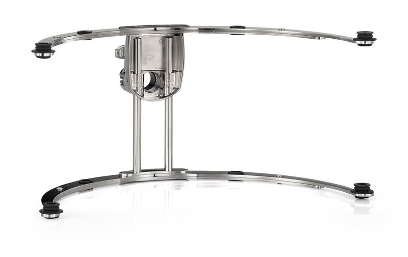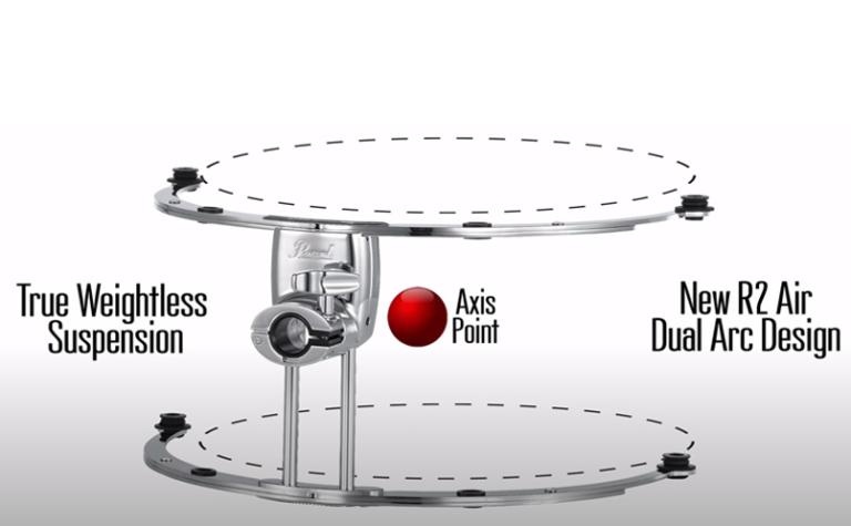 For the first time, totally unrestricted, fully uninhibited, tonally uncolored sound can be drawn from mounted toms, with the Pearl R2 Air Tom Suspension system. Its exclusive four-point floating isolation platform was developed following a two-year research and development journey. By understanding that every drum's best mounting point is in the CENTER of each shell, mounting weight is equally balanced across two floating points at the top and bottom of each tom. This gives true tonal separation from mounting hardware and enhances sonic output.