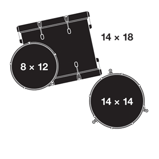 7-Ply Maple - - 30° bearing edge - Gretsch 'Silver Sealer' internal shell coating - Gretsch '302' steel hoop - 12" x 8" TT, 14" x 14" FT, 18" x 14" BD - Incl. single tomholder - No Cymbals.