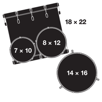 7-Ply Maple - - 30° bearing edge - Gretsch 'Silver Sealer' internal shell coating - Gretsch '302' steel hoop - 10" x 7" TT, 12" x 8" TT, 16" x 14" FT, 22" x 18" BD - Incl. double tomholder - No Cymbals.