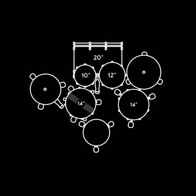 20" x 16" B.D. - 10"x08", 12"x09" Tom Toms, 14"x14" Floor Tom, 14"x5,5" Snare Drum, double braced hardware, pedal with double chain, drummer throne, Sabian Solar Series 14" Hi-Hat, 16" Crash and 20" Ride, including sticks and stickbag